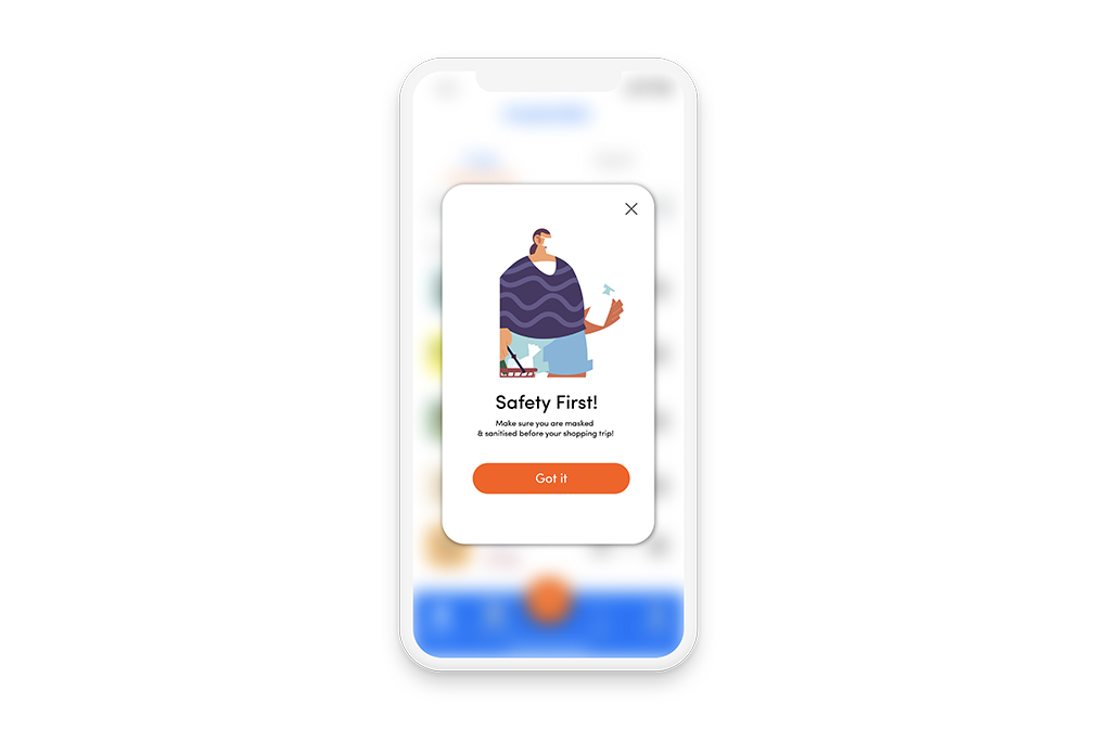 Shopbubble alerts you on all safety precautions so the user can focus on getting the groceries efficiently.